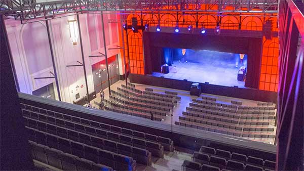El vestíbulo de la antigua Estación del norte se ha renovado como espacio destinado a teatro y conciertos, el Gran Teatro Bankia Principe Pío. con las obras, recupera toda la envolvente, amplios interiores y se dota de instalaciones.